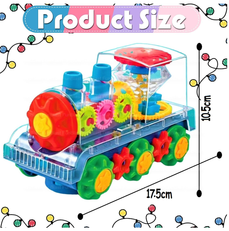 শিশুদের জন্য Electric Gear Train Toy – ৩৬০° রোটেটিং গিয়ার, লাইট ইফেক্ট ও ইউনিভার্সাল মুভমেন্টসহ। সেফ প্লাস্টিক দিয়ে তৈরি, 2+ বয়সের বাচ্চাদের জন্য আদর্শ। ইন্টারঅ্যাকটিভ লার্নিং ও মজার খেলনা, জন্মদিন বা গিফটের জন্য পারফেক্ট।